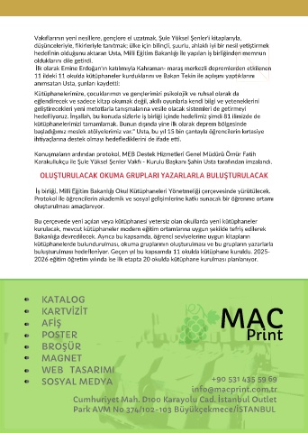 buluşturulması hedefleniyor. Geçen yıl bu kapsamda 11 okulda kütüphane kuruldu. 2025-