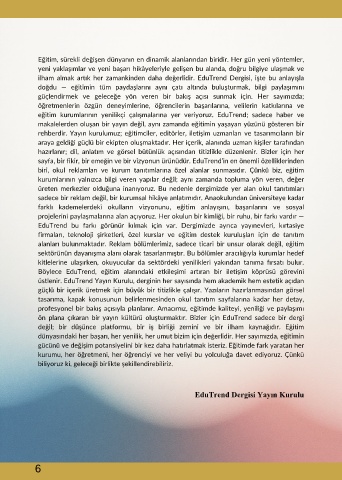 ön plana çıkaran bir yayın kültürü oluşturmaktır. Bizler için EduTrend sadece bir dergi
